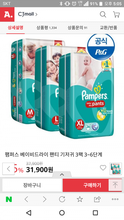 [옥션] 팸퍼스 베이비드라이 팬티 기저귀 3팩 3~6단계 (31,900/ 무료) > 국내핫딜