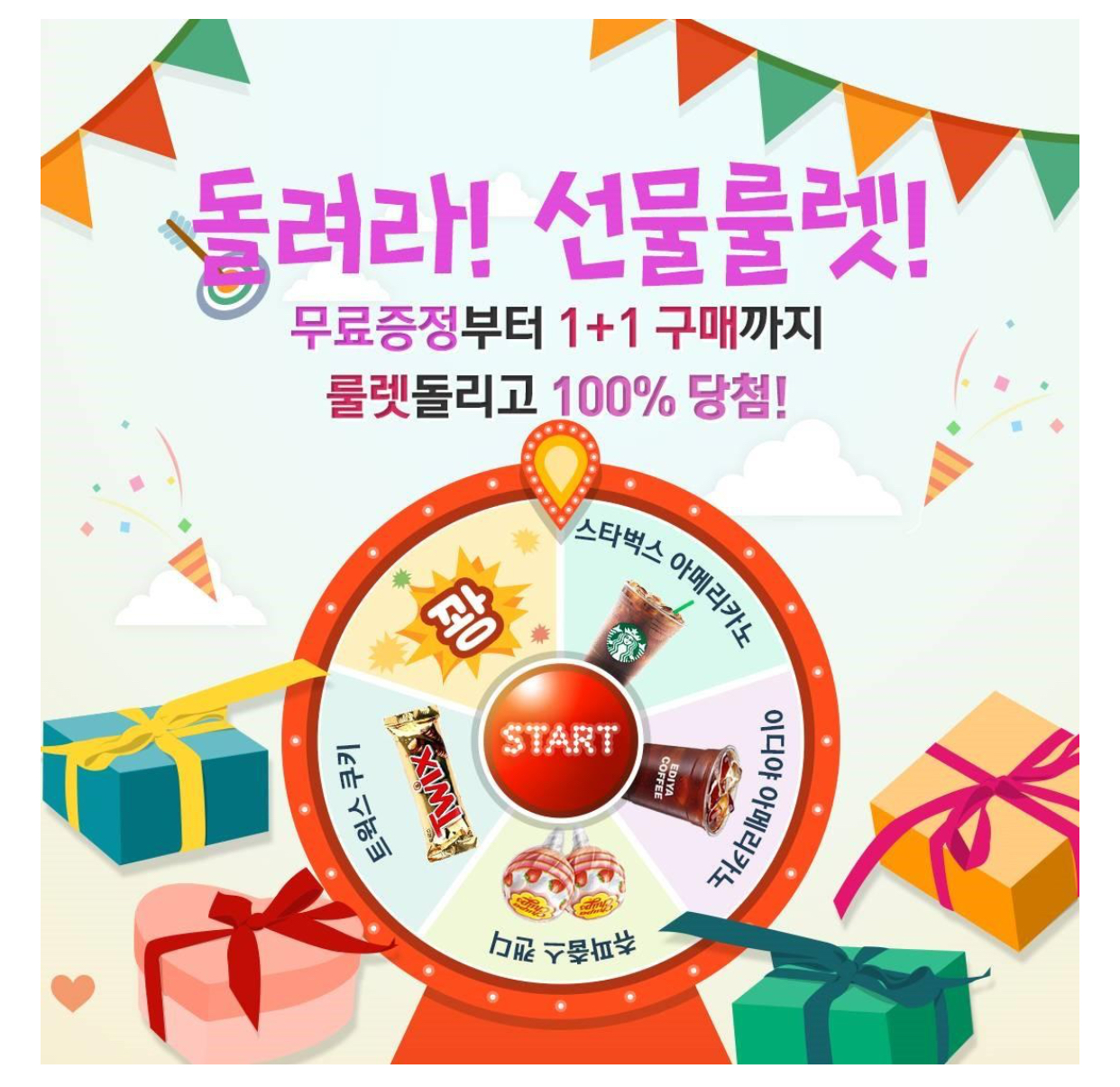 - 경품 : 츄파춥스 무료증정 / 스타벅스 1+1 / 이디야커피 50% 할인 / 트윅스쿠키 1+1