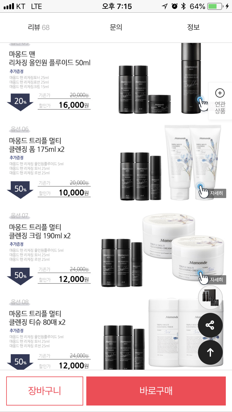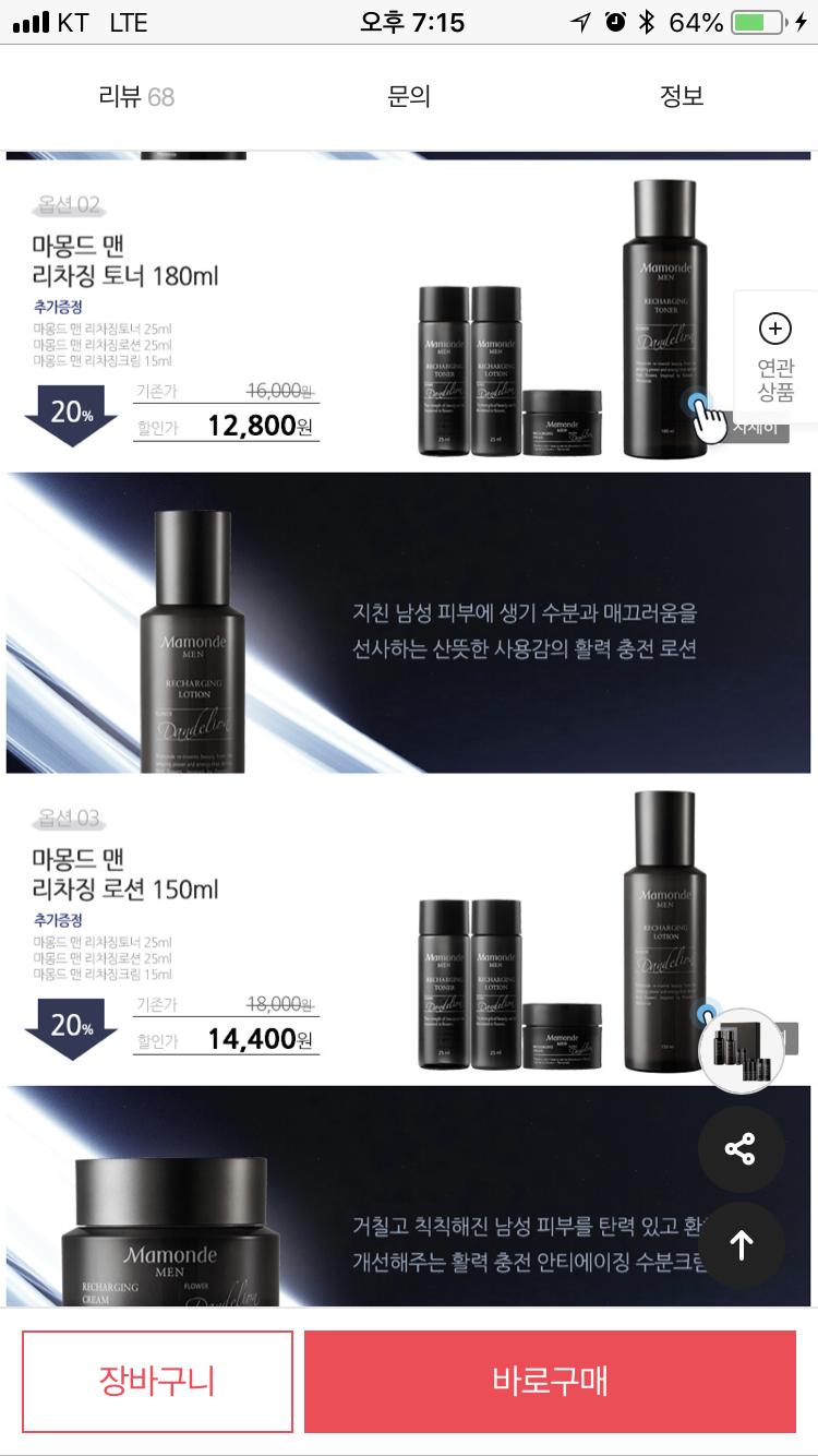 마몽드 선, 맨, 클렌징 폼 이런거 50% ~ 60% 특가입니다 아모레퍼시픽 20% 할인 꼭 다운받아서 추가 20% 할인 받으세요 무배입니다