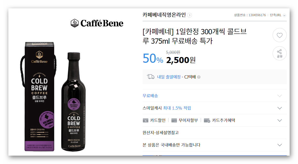 [지마켓] 카페베네 콜드브루 375ml (2500/무료) > 국내핫딜
