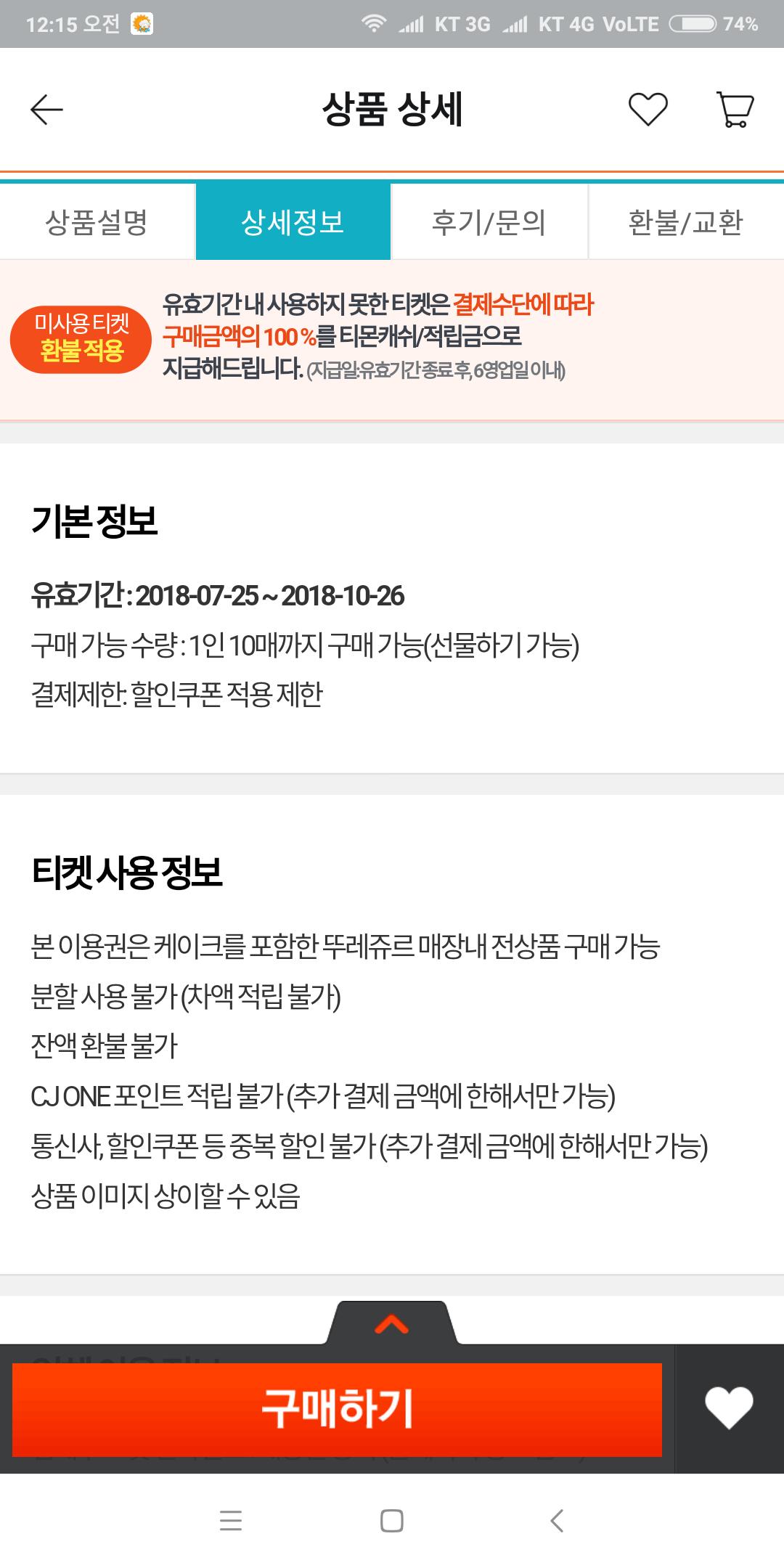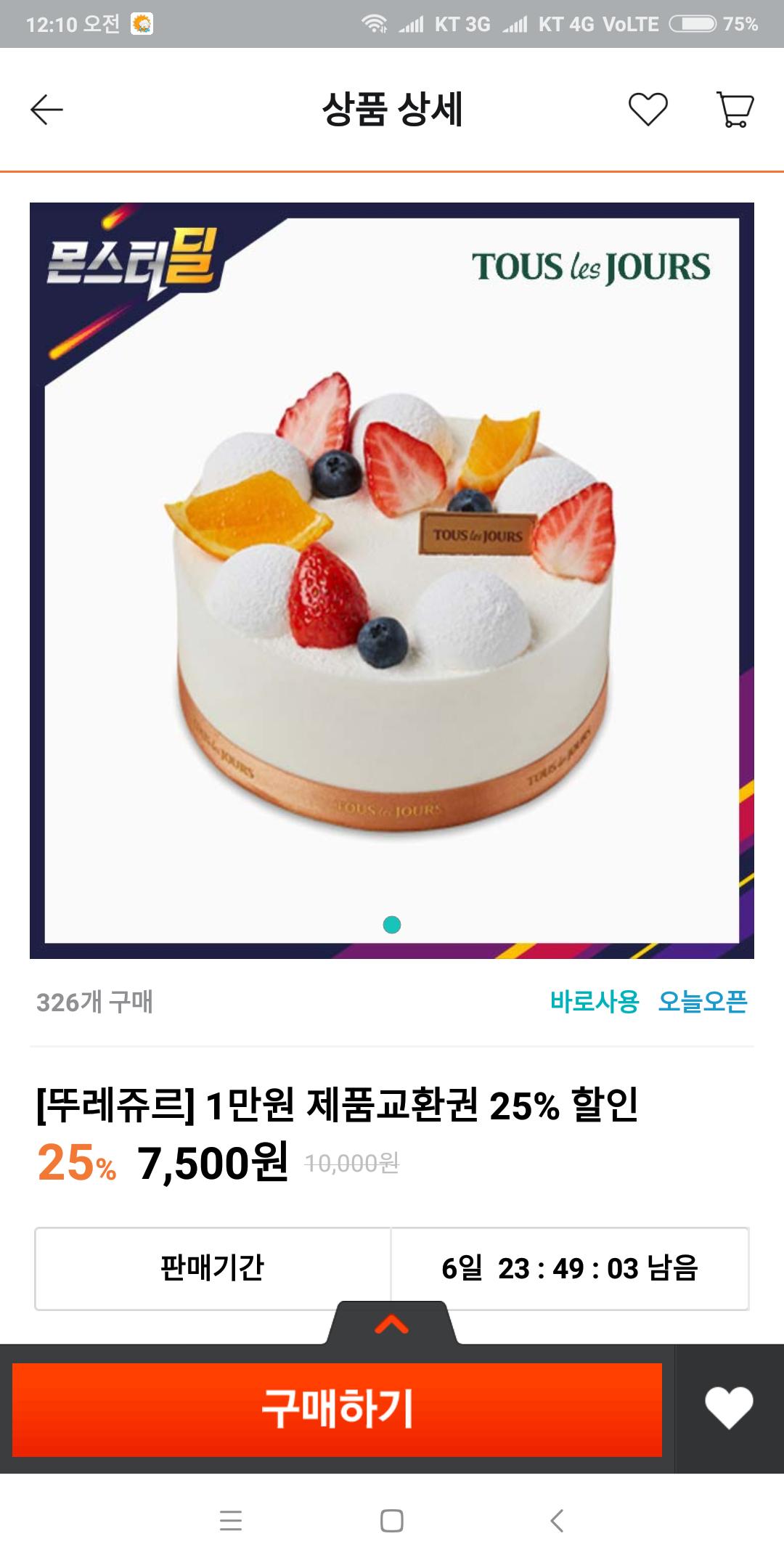 [티몬] 뚜레쥬르 1만원제품 교환권(7500원/무료) > 국내핫딜