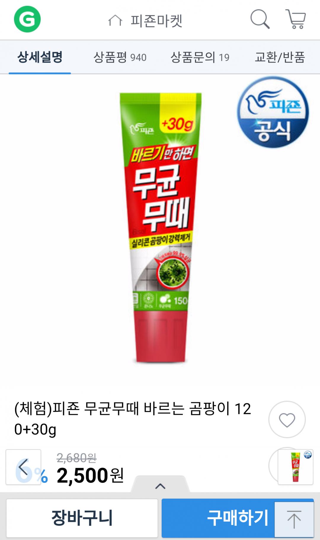 [G마켓] 피죤 바르는 곰팡이 150g (2500/0) > 국내핫딜