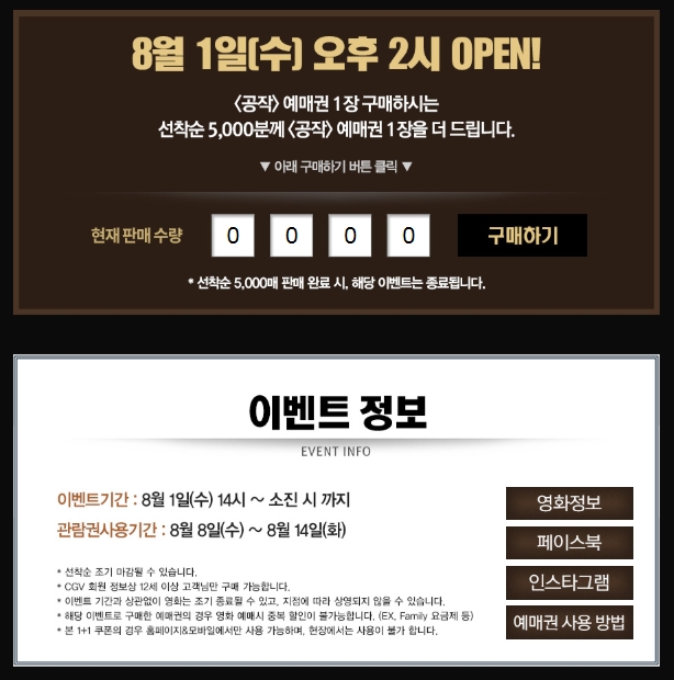 [CGV] 공작 1+1 (10,000/무료) 14시부터
