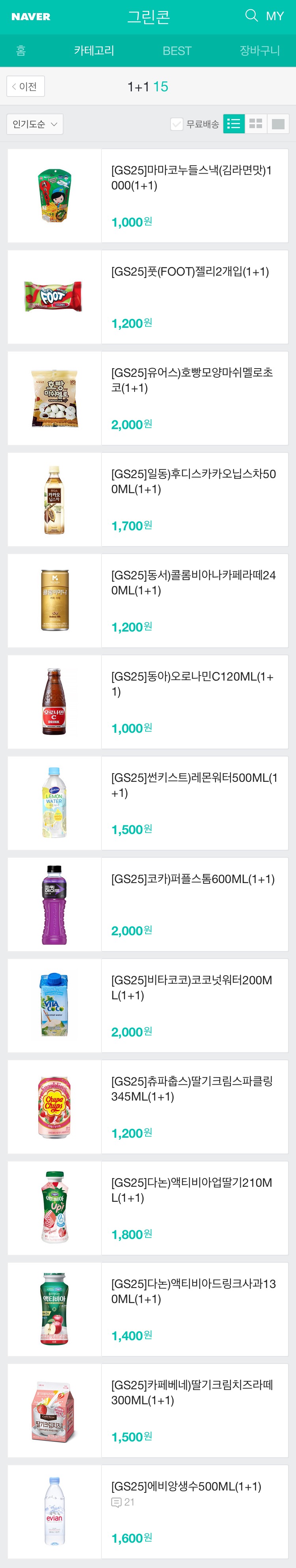[네이버 그린콘] 에비앙 등 1+1 (다양/0)
