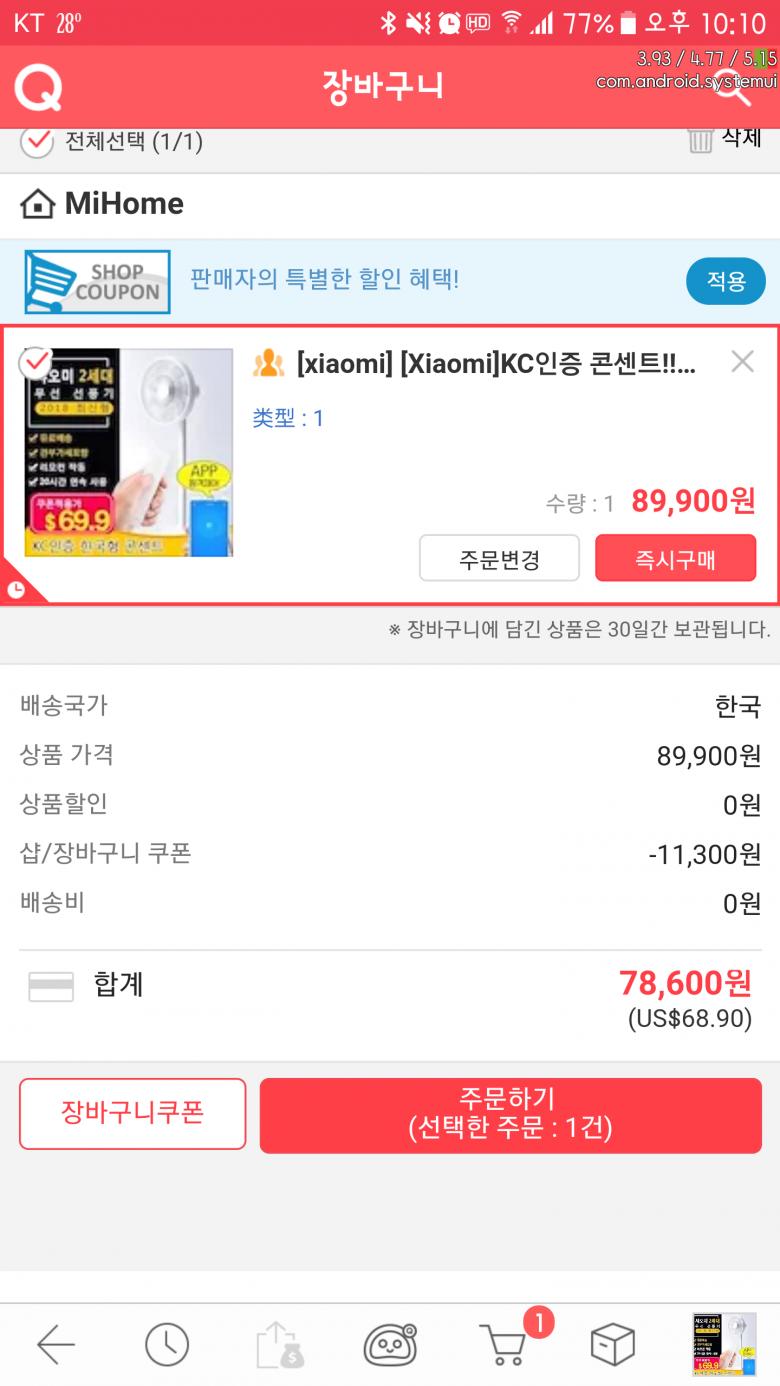 누구나 적용 가능한 앱 쿠폰 9불짜리 적용하시면 79,700원에 구매 가능합니다.