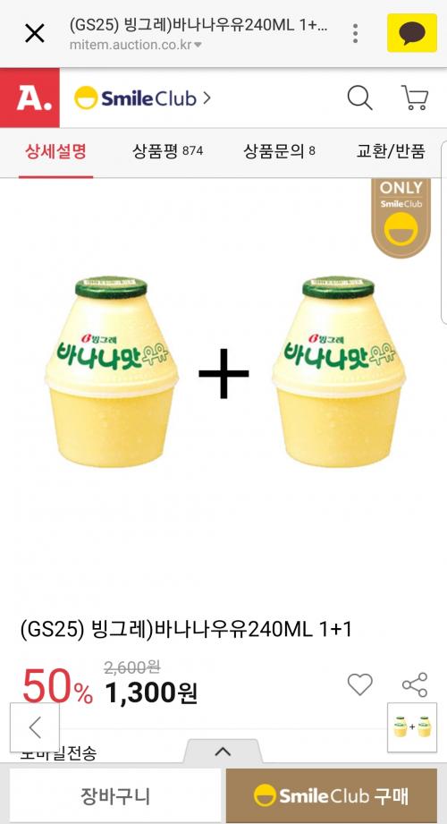 빙그레 바나나맛 우유 1+1 \2600 >>> \1300 입니다 .