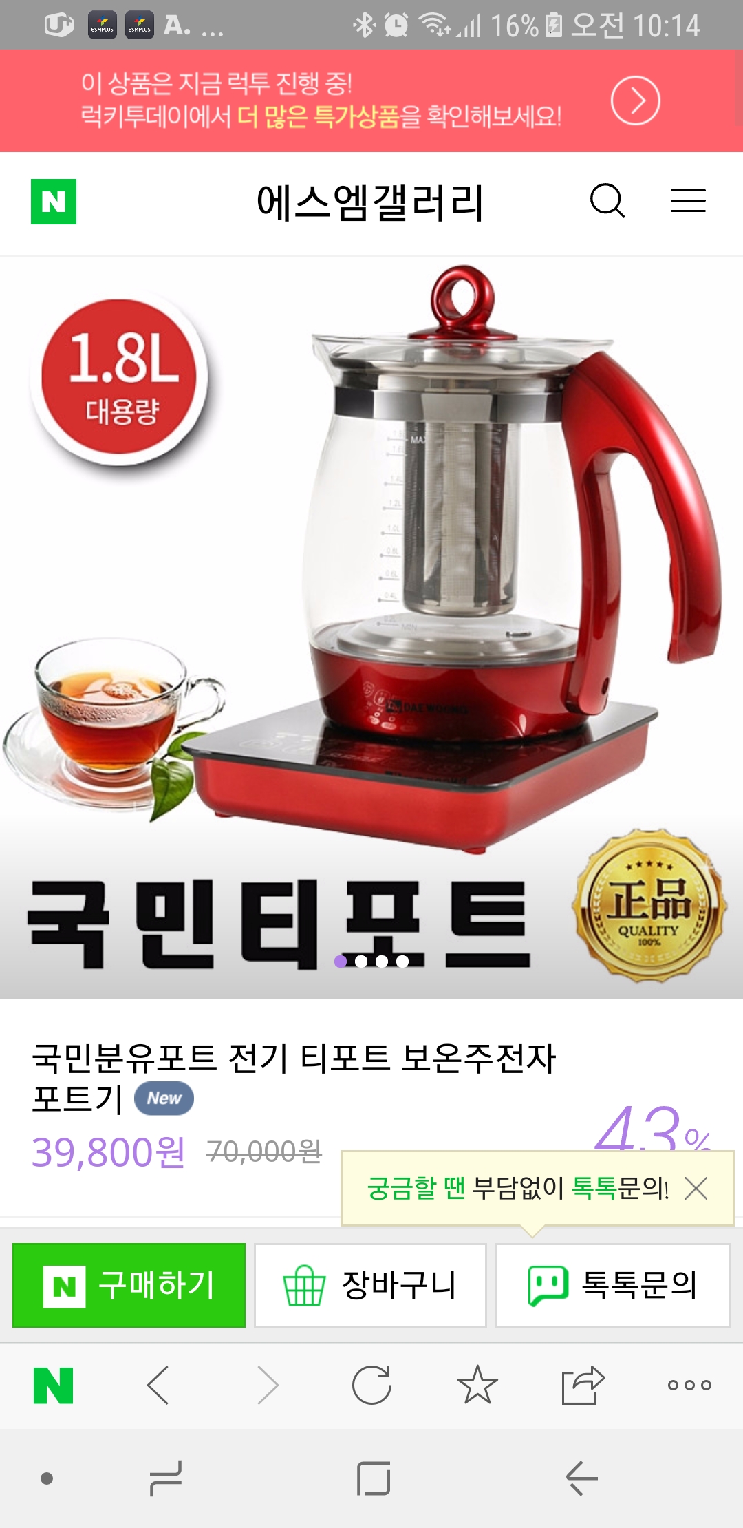 [네이버쇼핑] 분유포트 티포트 1.8L (39,800/무료) > 국내핫딜