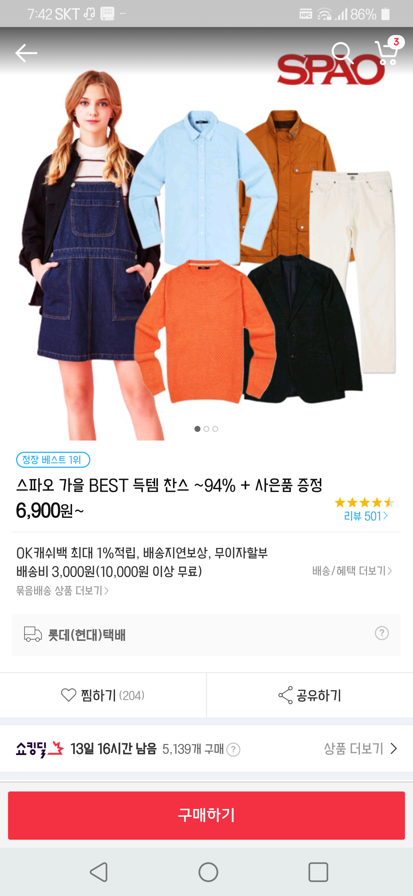 스파오가 간혹 괜찮은 퀄리티를 보여줍니다.