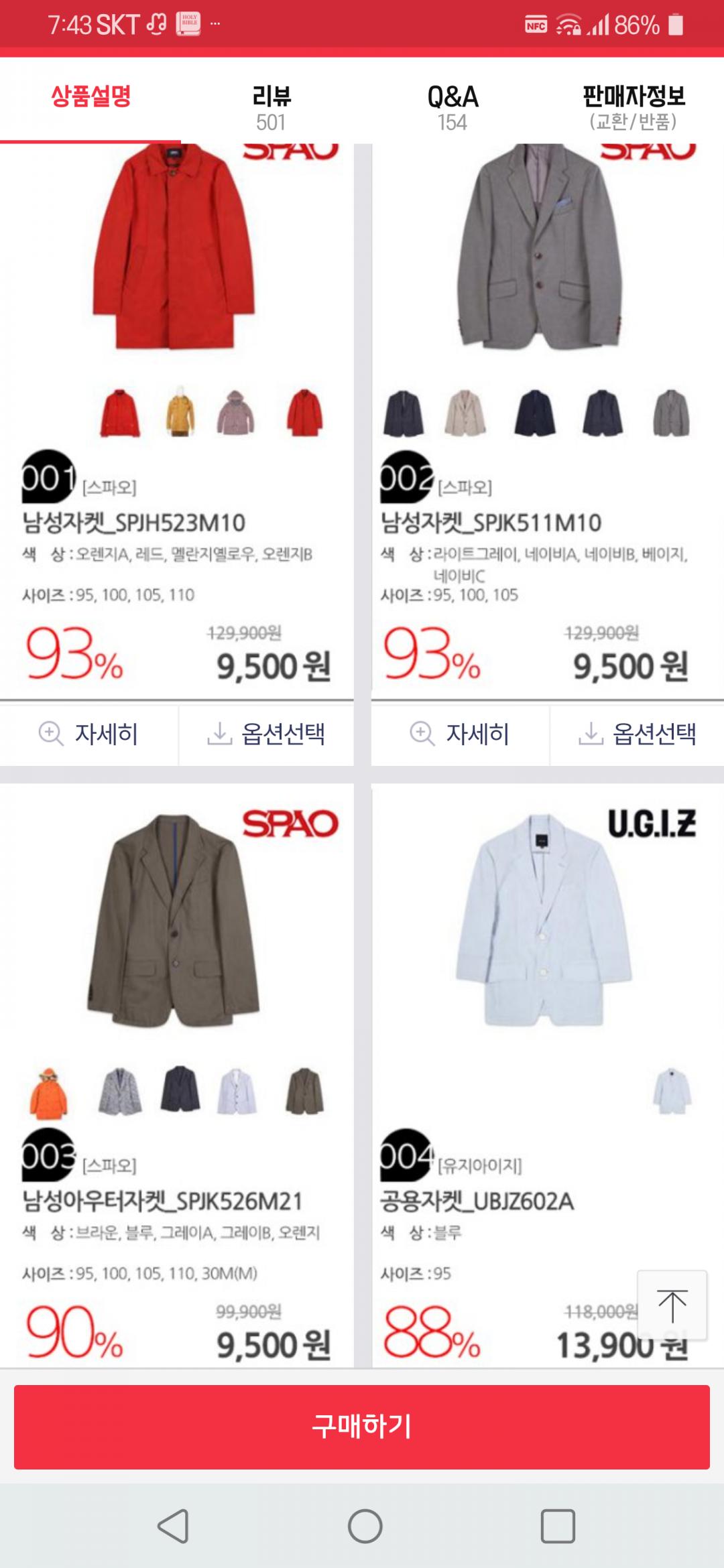 저는 1번 사파리재킷과 90번 와인팬츠 구매했습니다