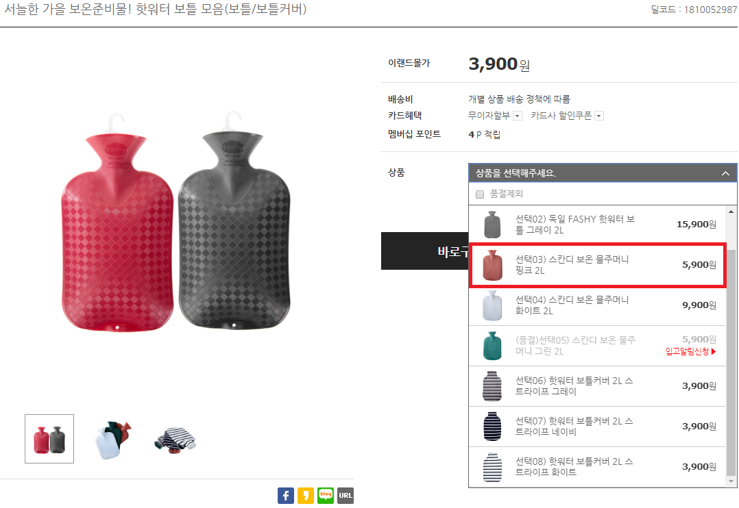 [이랜드몰] 스칸디 보온주머니 핑크색(5900원/3000원)