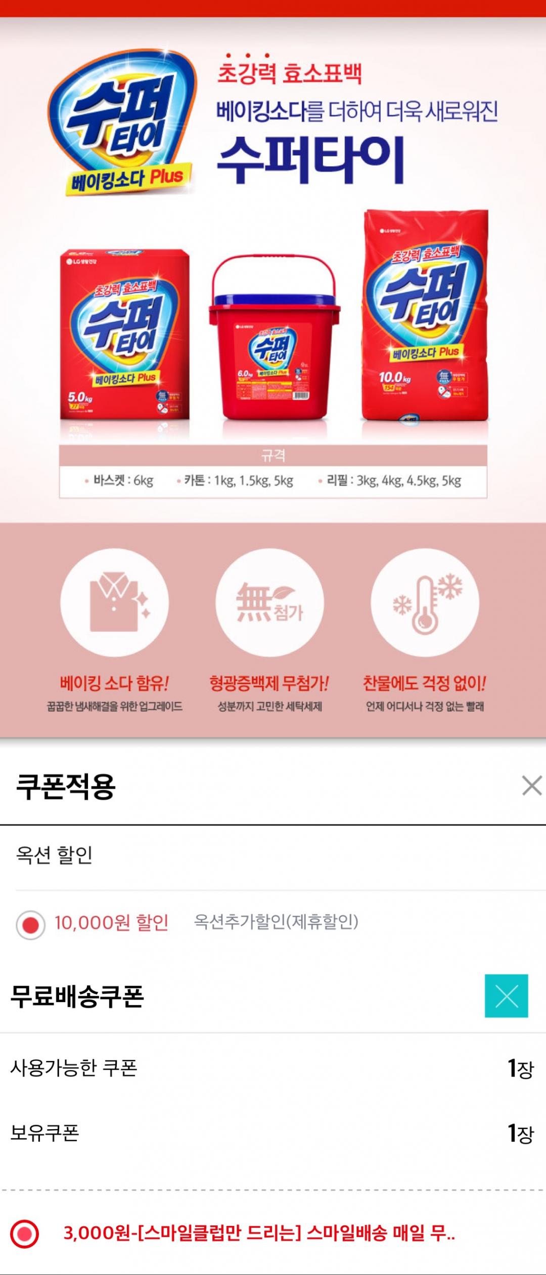 [옥션] <스마일클럽>수퍼타이 분말세제 바스켓 6kg (2,900원/무료) > 국내핫딜