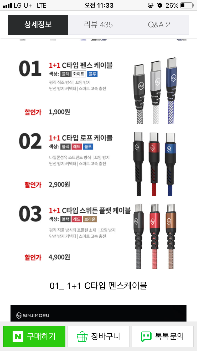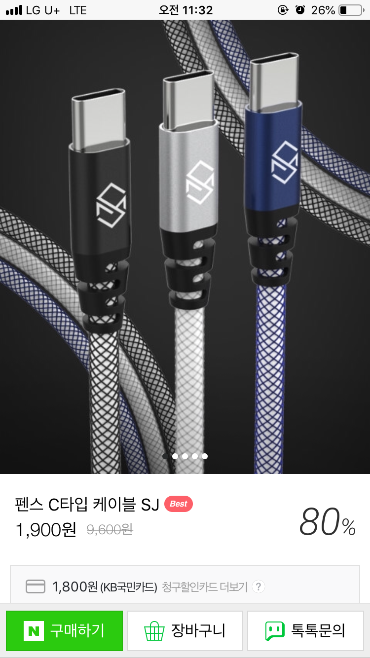 [네이버] C타입 1+1 케이블 (1,900원/무배)