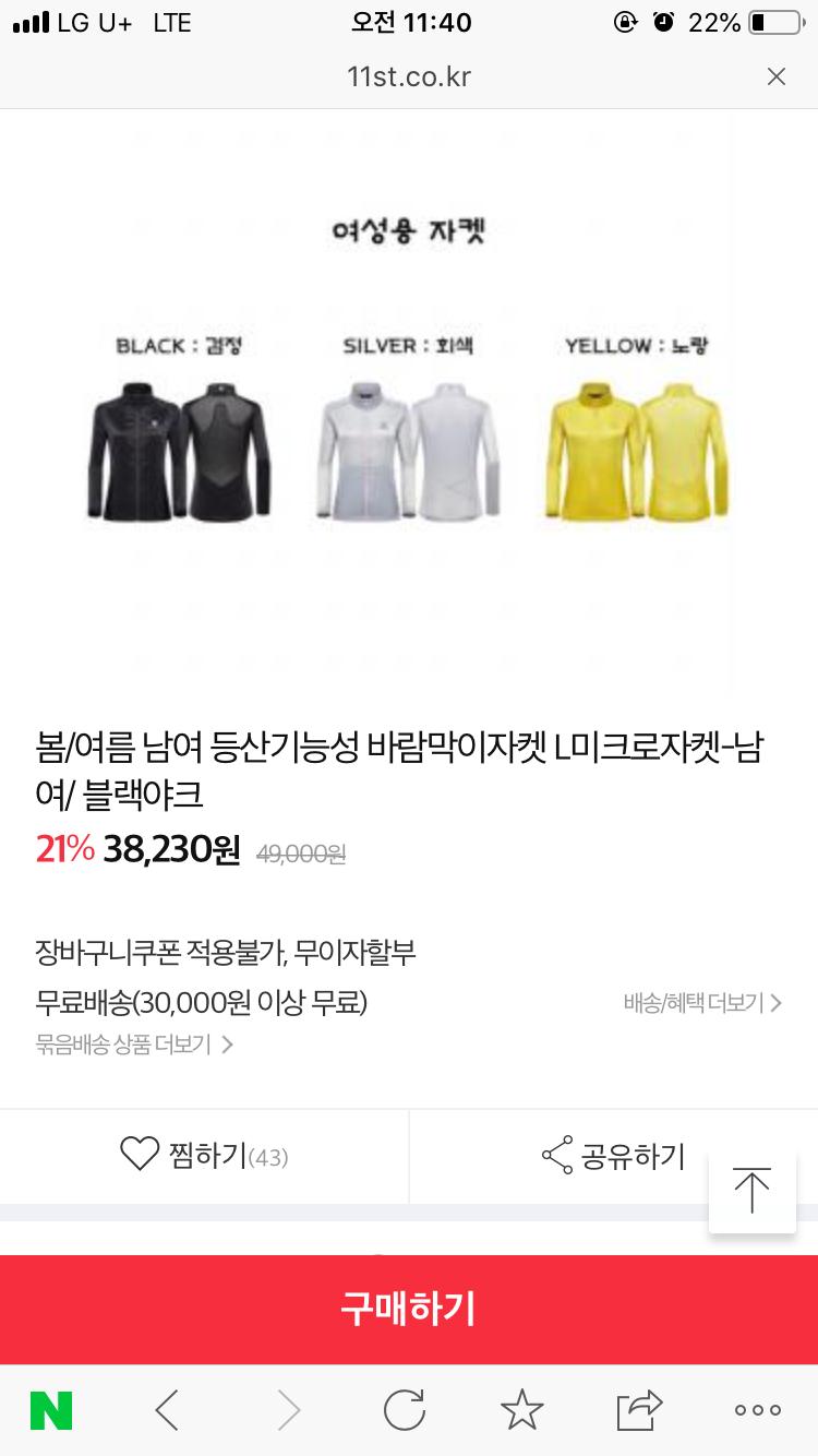 [11번가] 블랙야크 남여 바람막이 (38,230원/무배) > 국내핫딜