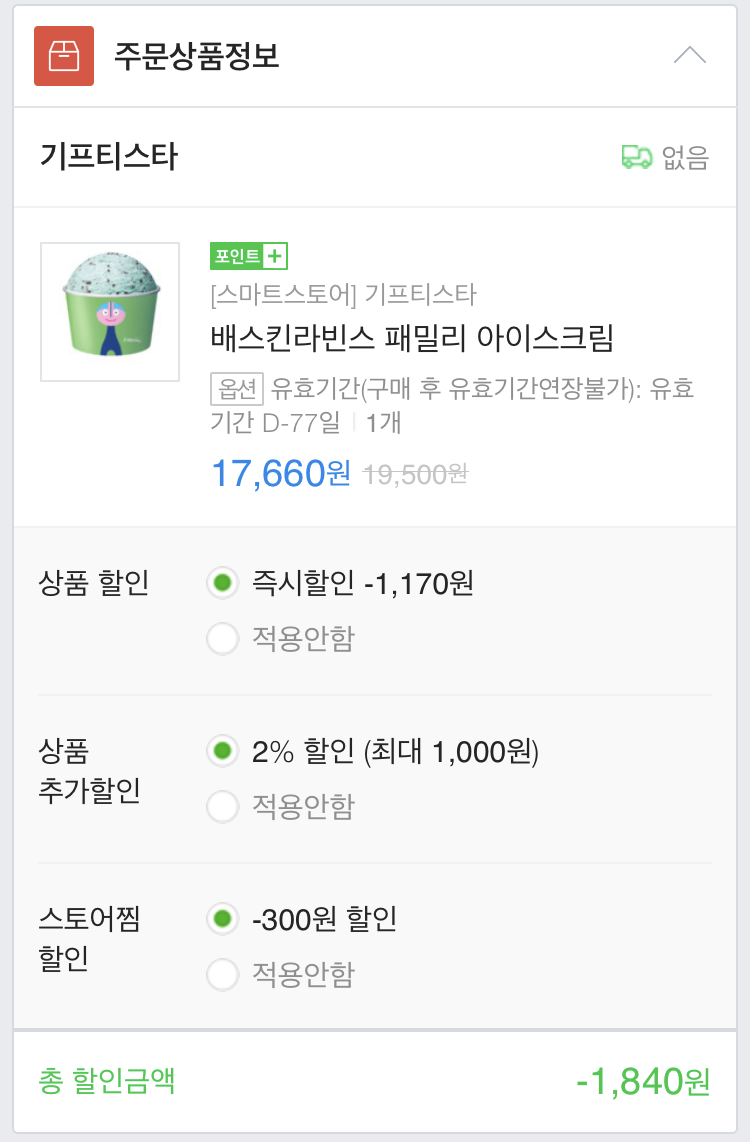 기프티스타는 모바일쿠폰 되팔이 하는 곳이라 사이즈업 적용시 할인된 쿠폰이면 사이즈업 안 될 수 있습니다. 참고하세요! | ||