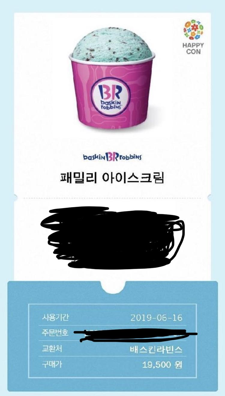 해피포인트앱에서 해피콘 하프갤런 19500원에 팔고 있어요 유효기간도 93일이고