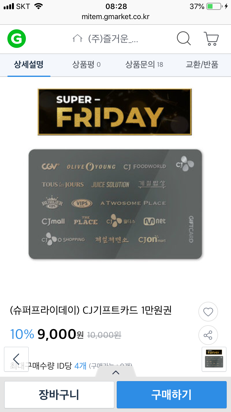 스마일캐시 사용 가능으로, 할인율이 크게 올라가 저렴하게 구매할 수 있을 것 같아 올립니다.