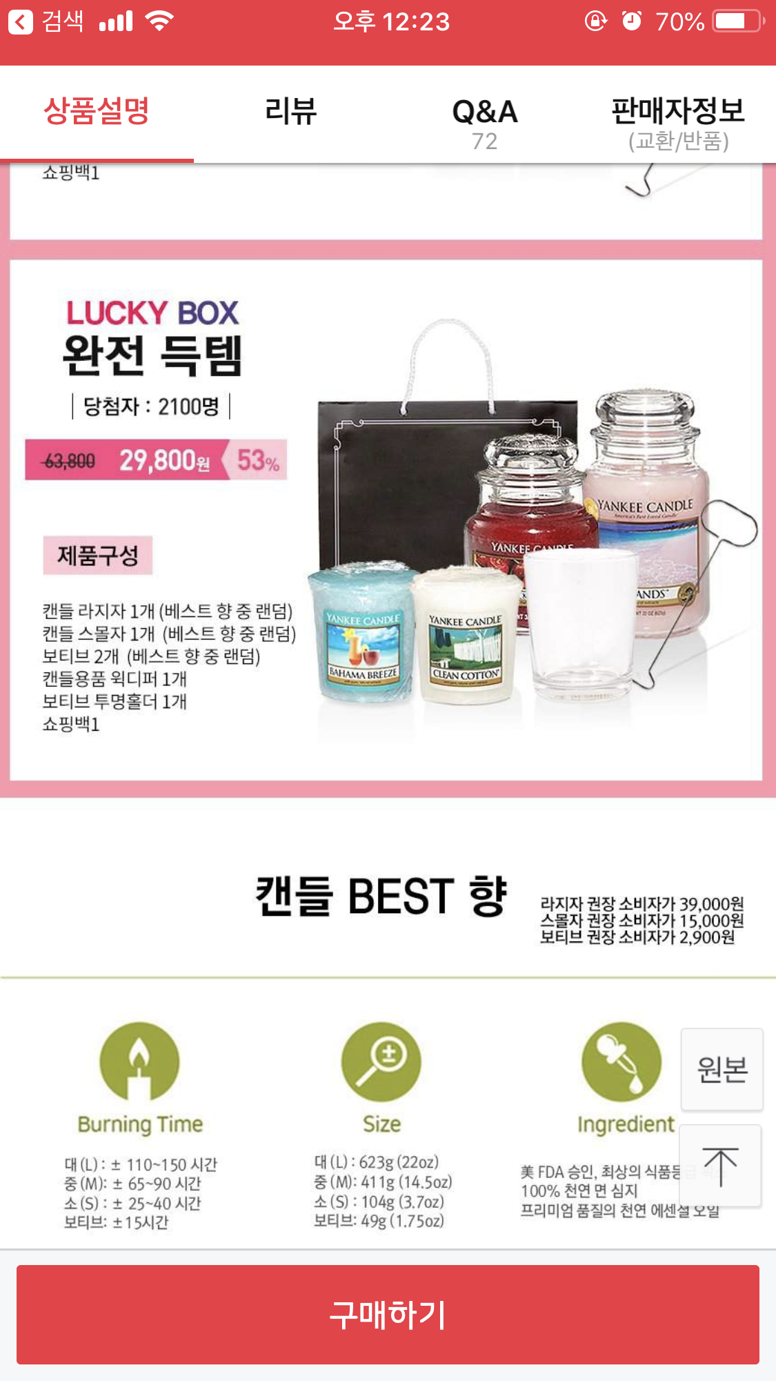 [11번가] 양키캔들 럭키박스 29,800원 (무배) > 국내핫딜