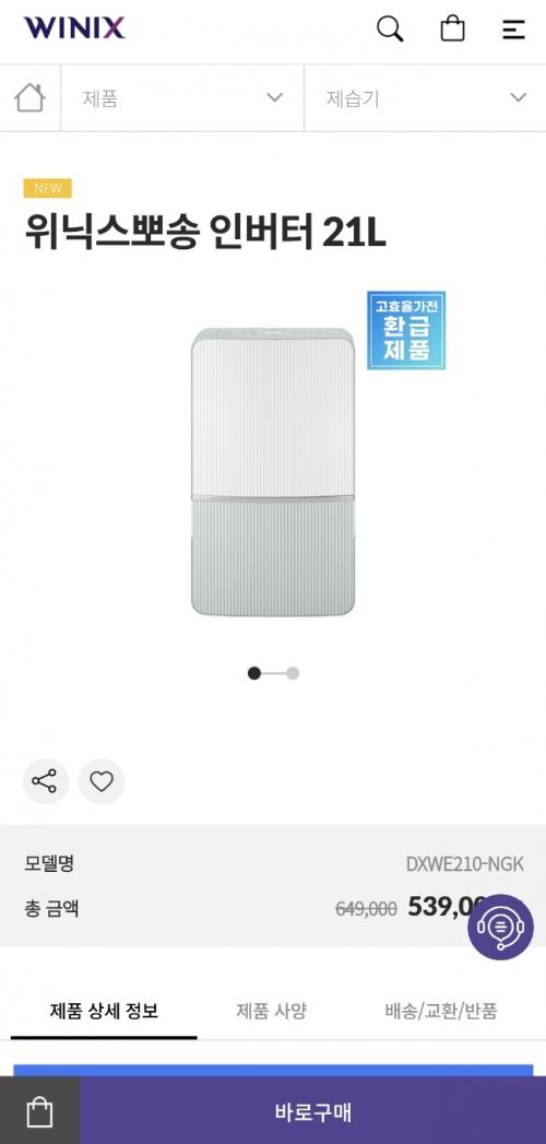 [위닉스] 뽀송 인버터 제습기 21L (458,150원/무배) > 국내핫딜