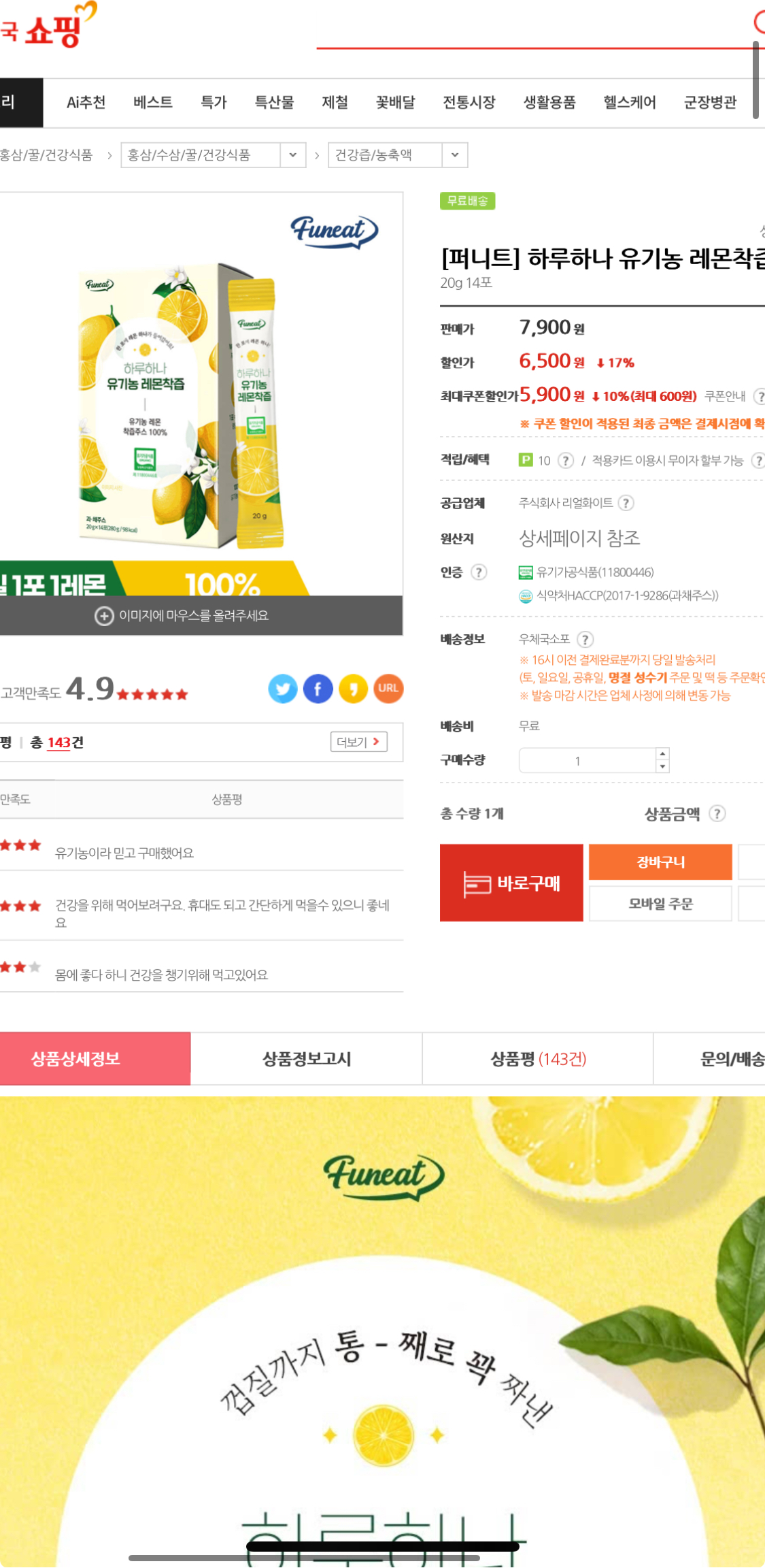유기농 레몬즙 14포 가격 5900원 나와요