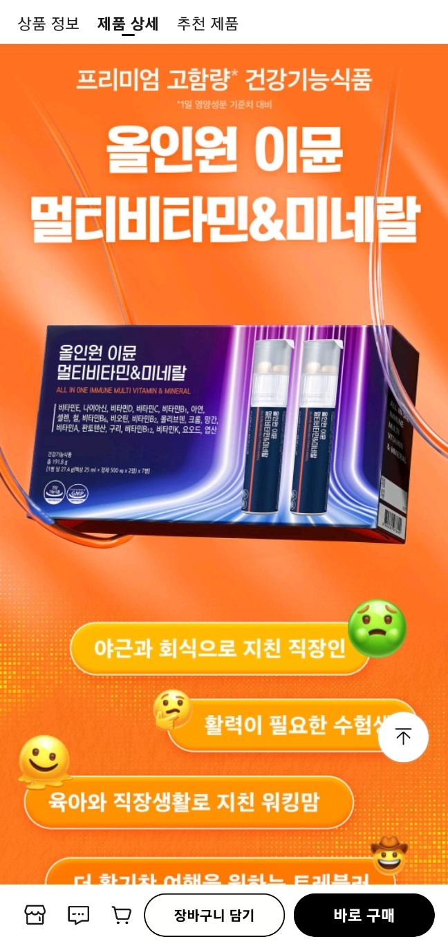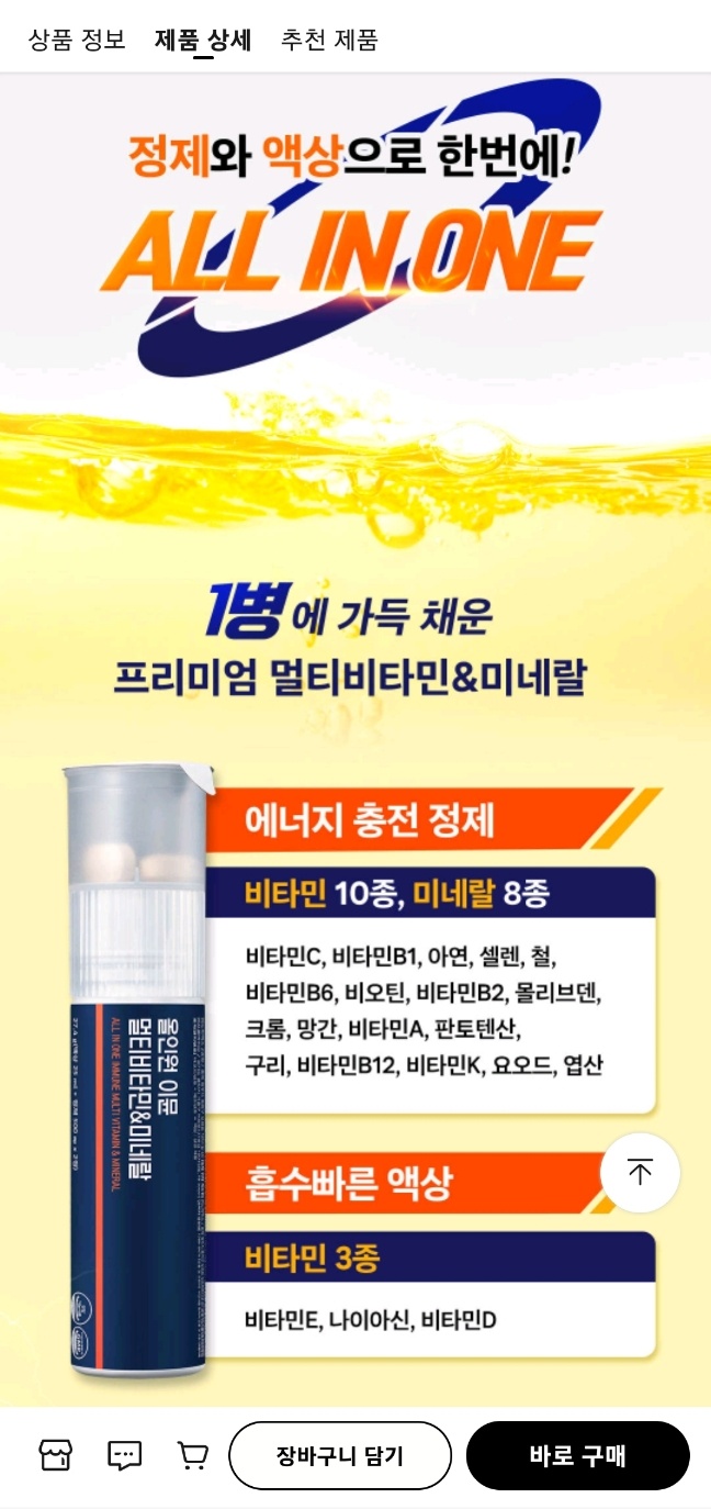 21종 필수영양소 고함량으로 들어간 복합제형 멀티비타민 제품이라 면역력 유지용이나 선물용으로 추천할만합니다
