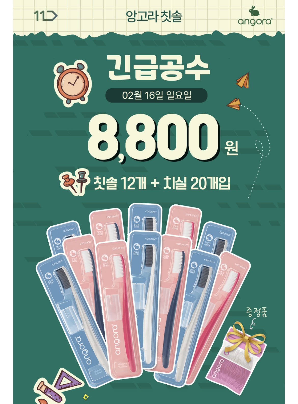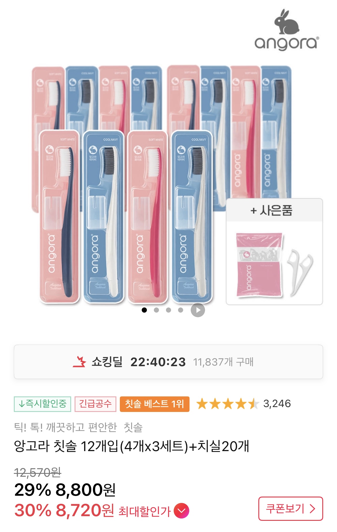 칫솔 12개에 치실 20개 구성이라 가격 너무 좋습니다.