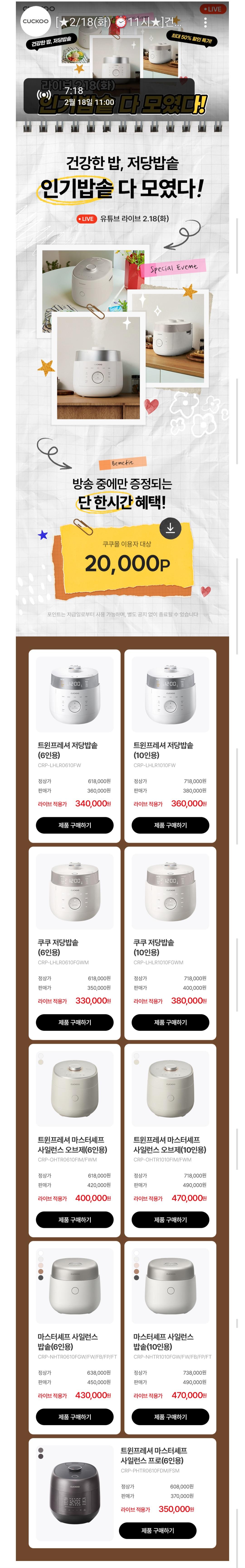 쿠쿠몰 라이브에서 저당밥솥, 사일런스 모델 등