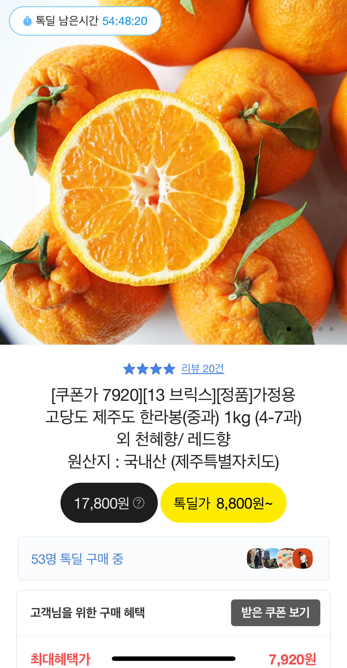 [카카오] 고당도 제주도 한라봉 1kg (7,920원/무배) > 국내핫딜