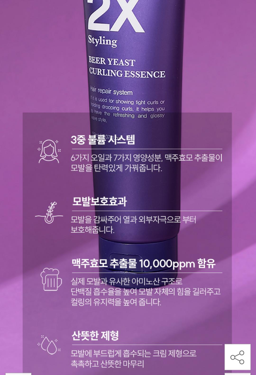 손상은 덜되고 컬링 유지키셔주는 에센스에요