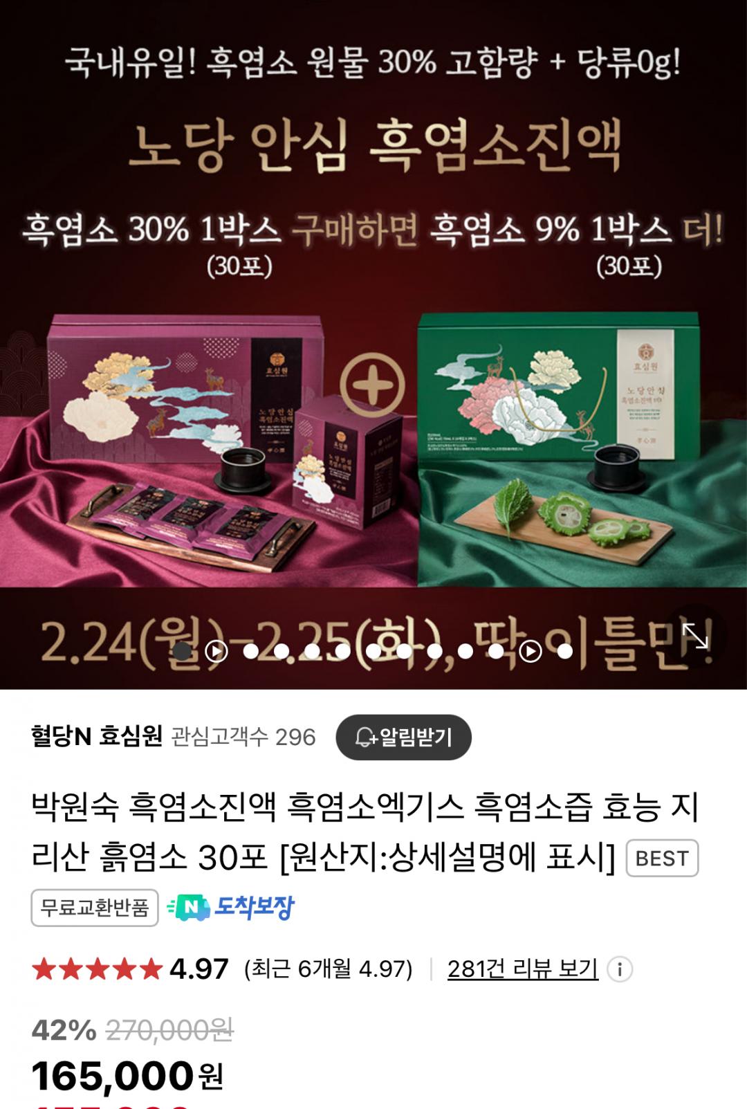 [네이버] 효심원 흑염소진액 30포 (169,000원/무배) > 국내핫딜