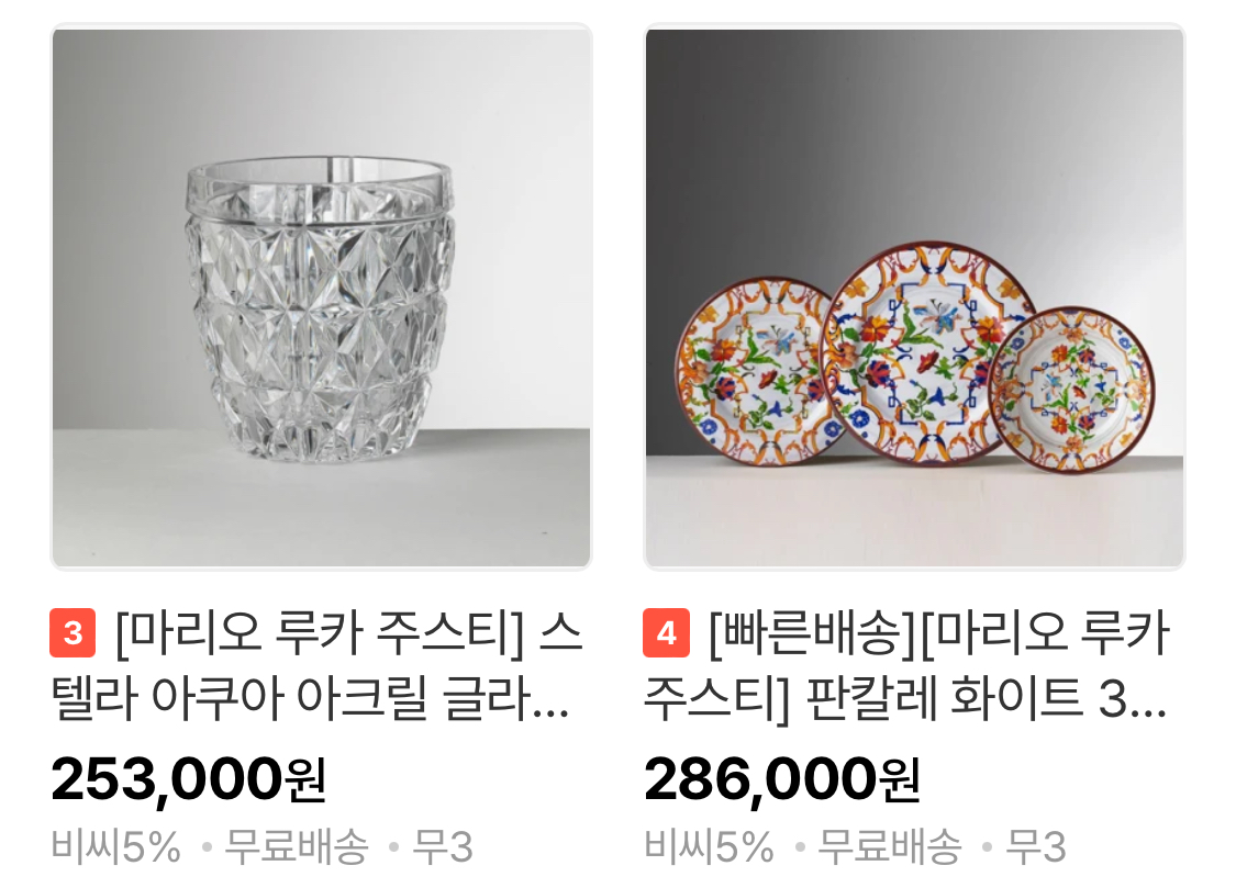 이탈리아 테이블 웨어 브랜드 마리오 루카 주스티에서 쇼라방송 진행한다고 합니다.