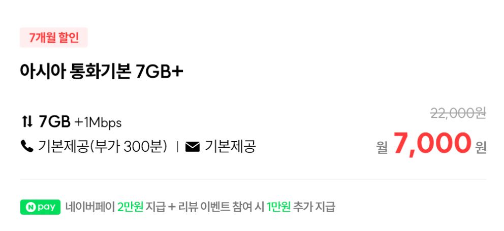 ​네이버페이 받으시면 월 2천원으로 이용 가능하십니다.
