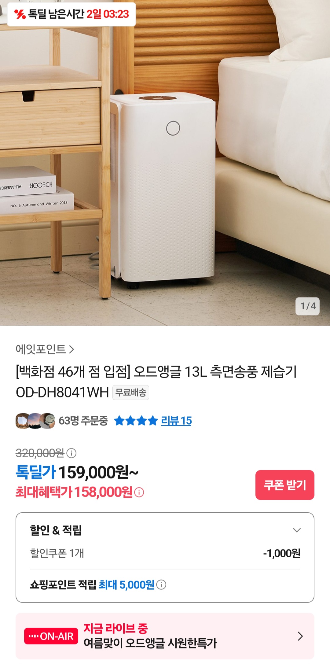 [카카오] 오드앵글 13L 측면송풍 제습기 (158,000원/무배) > 국내핫딜