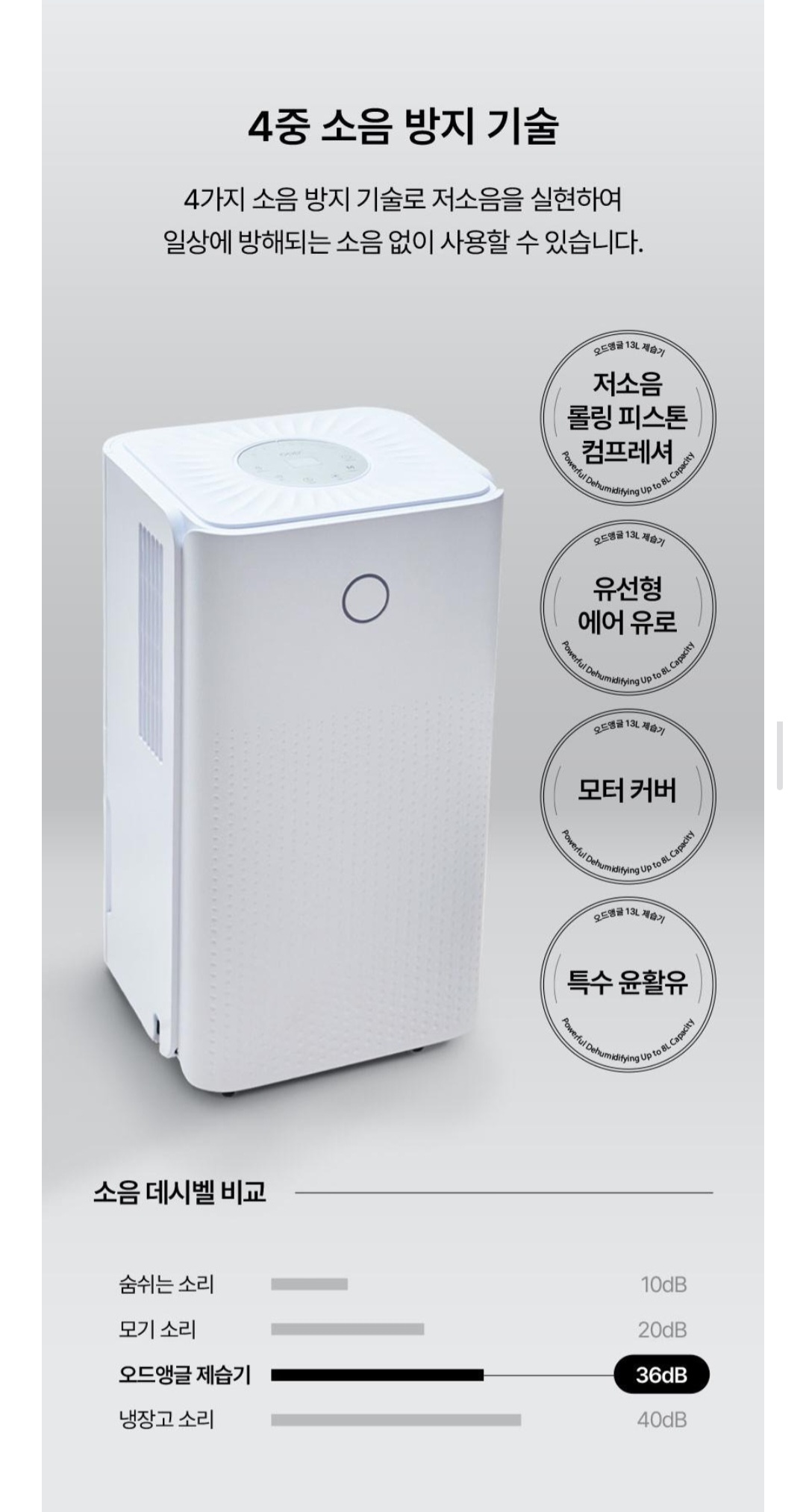 4중 소음 방지 기술 들어간 저소음 버전에 호스로 자동배수 가능하고