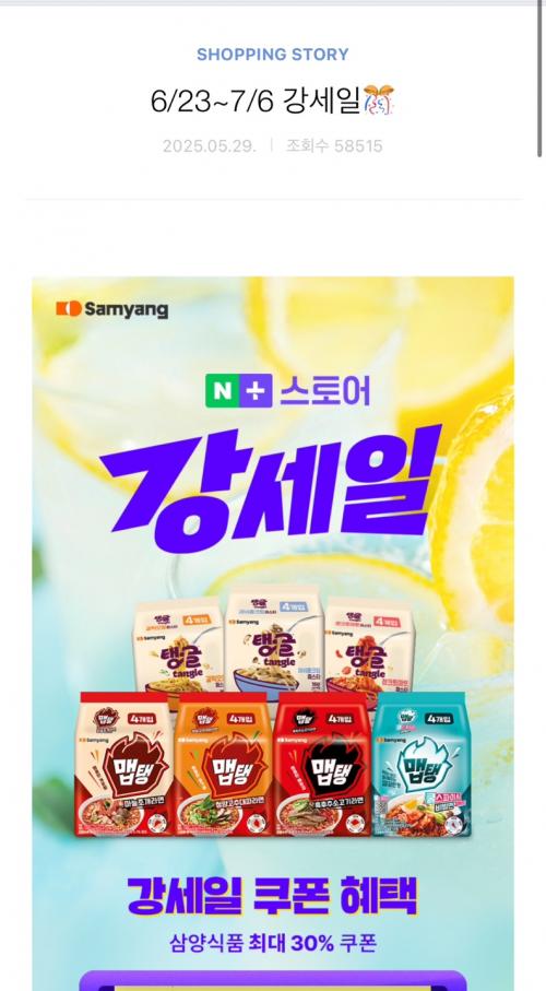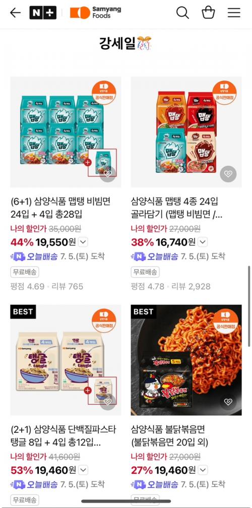 [삼양식품 공식몰] 불닭/삼양/맵탱 전제품 기획전 행사하네요 > 국내핫딜