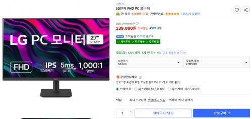 [쿠팡] 엘지 PC모니터 27MS500 (139,000원/무료)