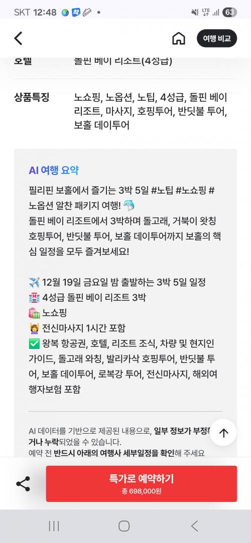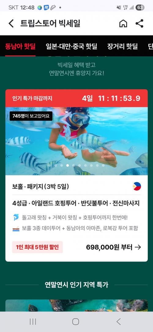 [트립스토어] 보홀 3박5일 노쇼핑 패키지 (698,000원부터/무료) > 국내핫딜