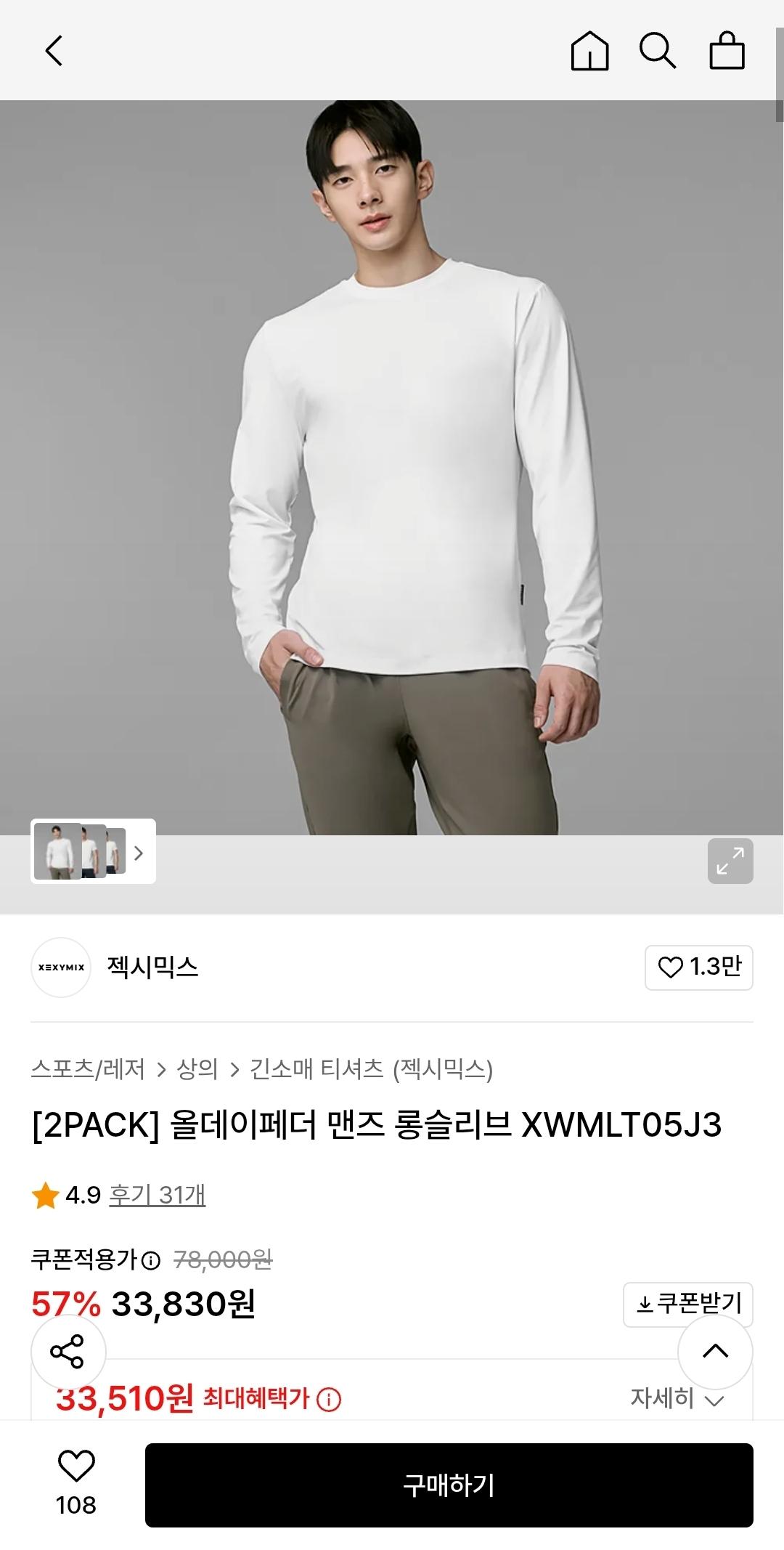 [무신사] 젝시믹스 올데이페더 맨즈 롱슬리브 2팩 (33,510원/무배) > 국내핫딜