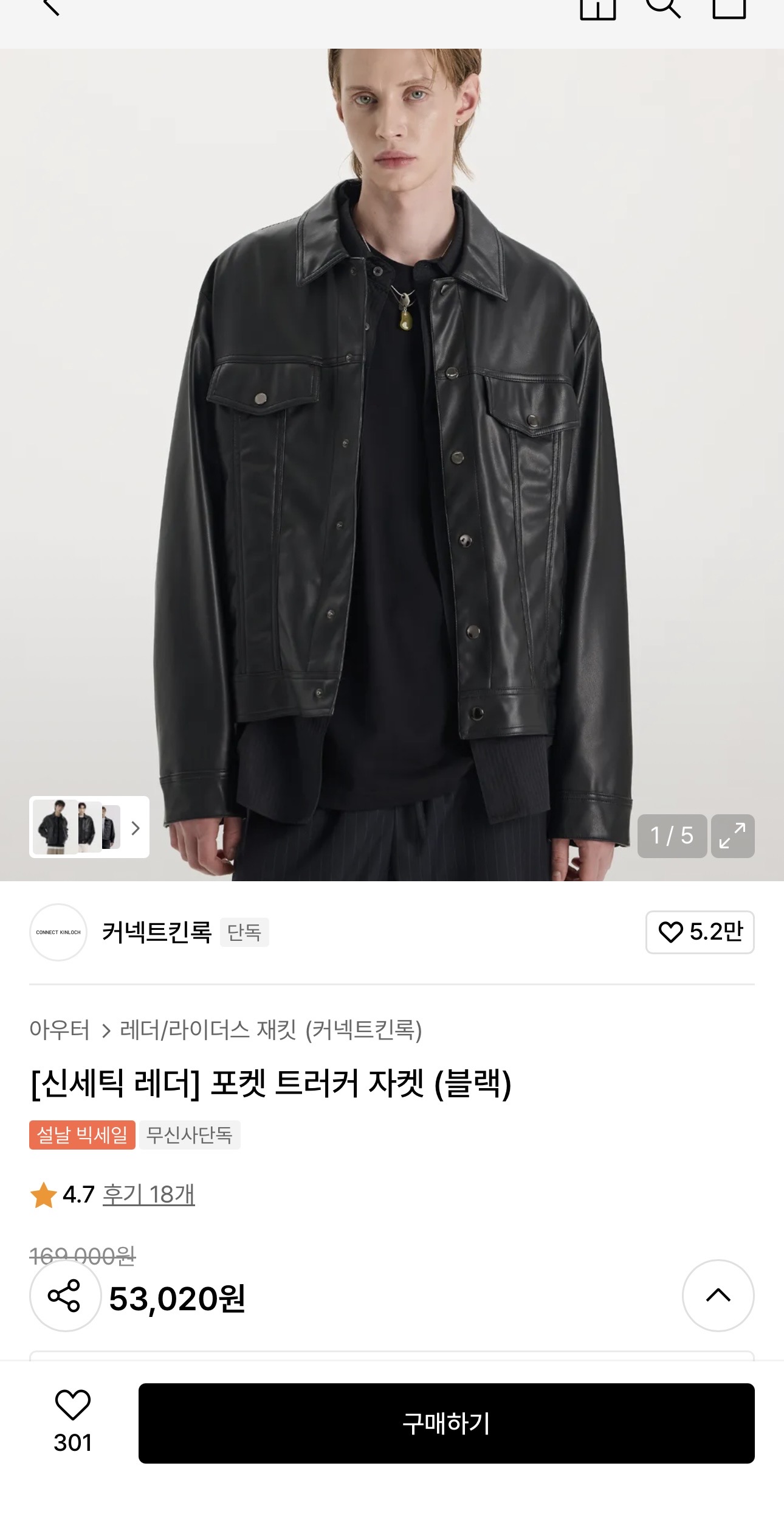 [무신사] 킨록 포켓 트러커 자켓 (53,020원/무료)