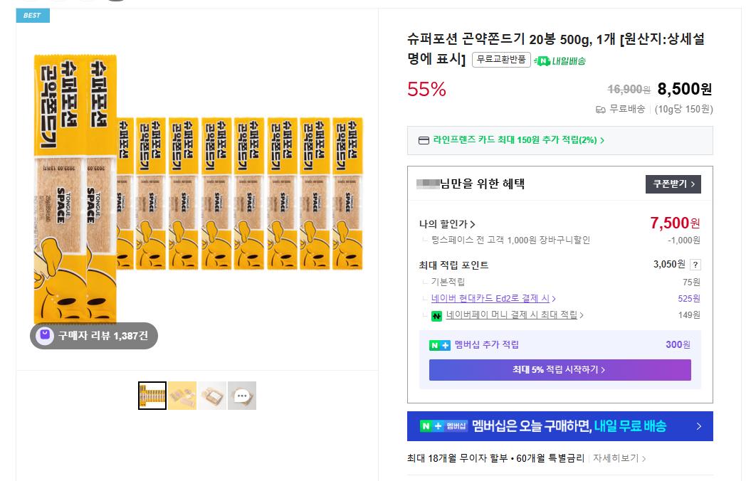 [네이버]슈퍼포션 곤약쫀드기 20봉 (7,500원/무배)