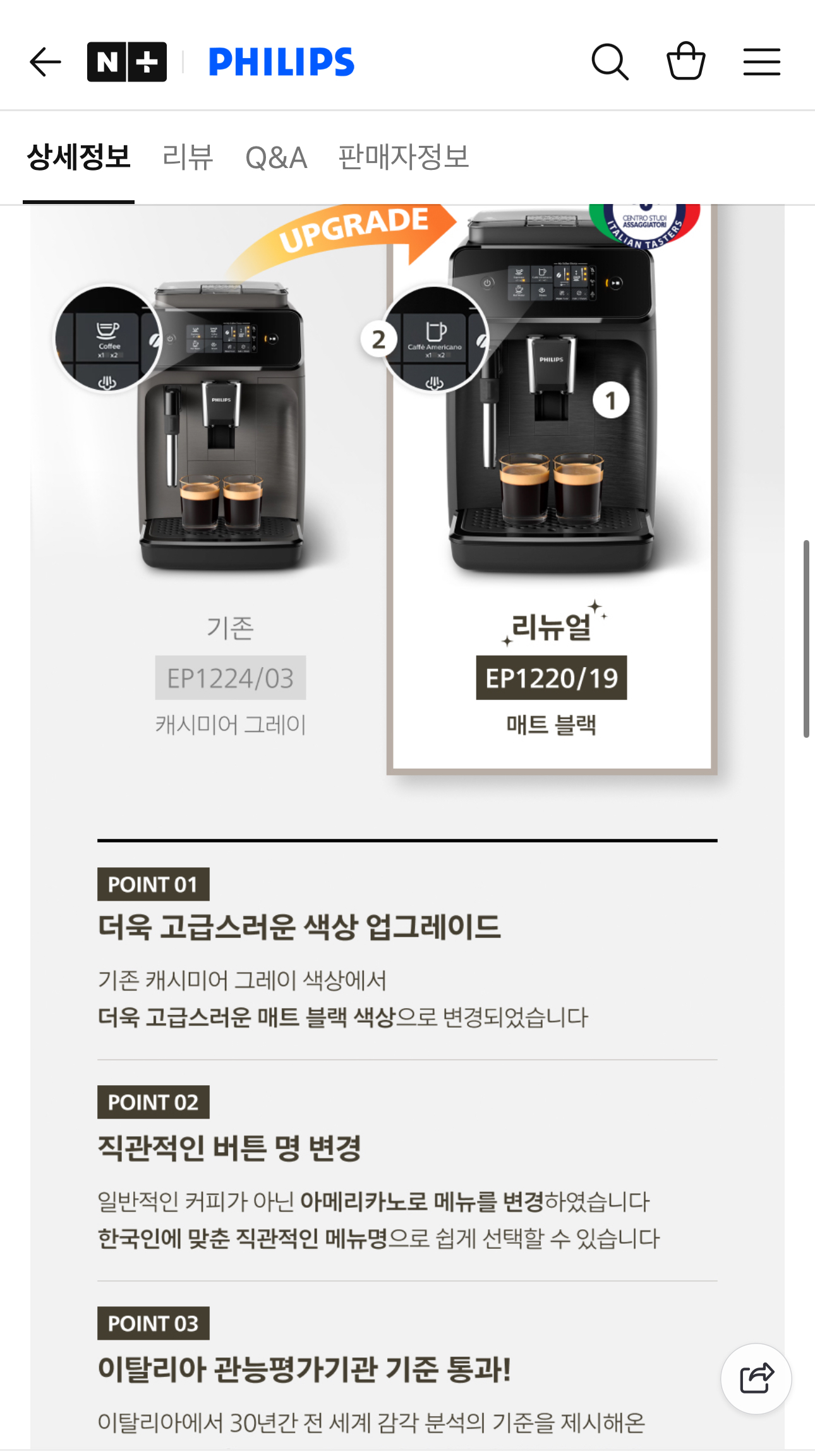 전자동이라 원두만 넣으면 바로 내려주는 타입이라 편한게 장점입니다