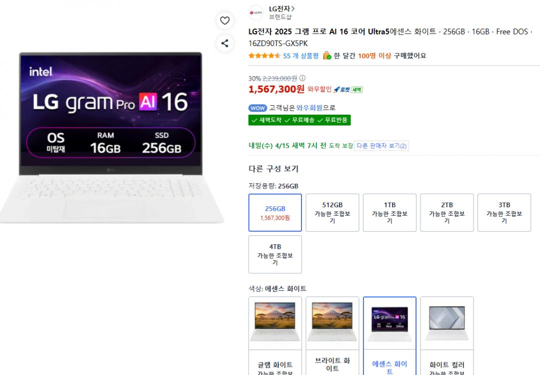[쿠팡] LG 그램 Pro 16ZD90TS-GX5PK (1,567,300원/무료)