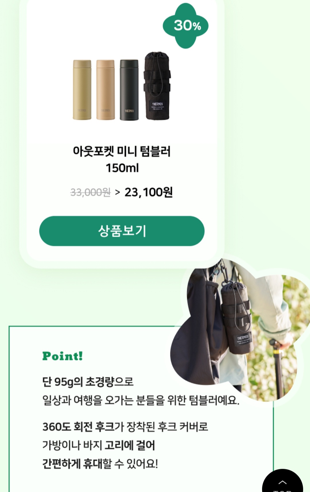 써모스 공홈에서 봄시즌 특가로 30% 할인중입니다.