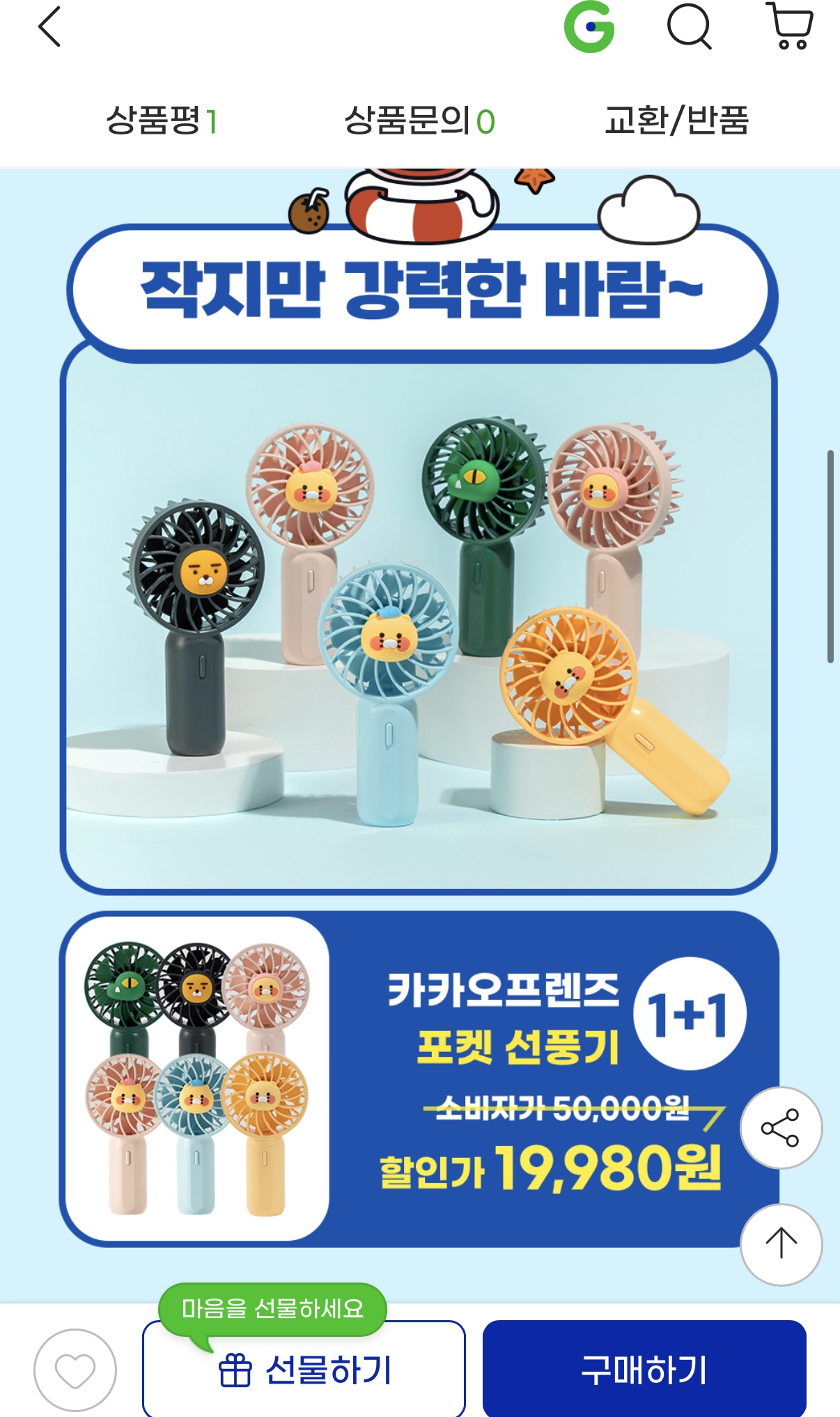 [지마켓] 카카오/니니즈 포켓 선풍기 1+1 (19,980/무배) > 국내핫딜