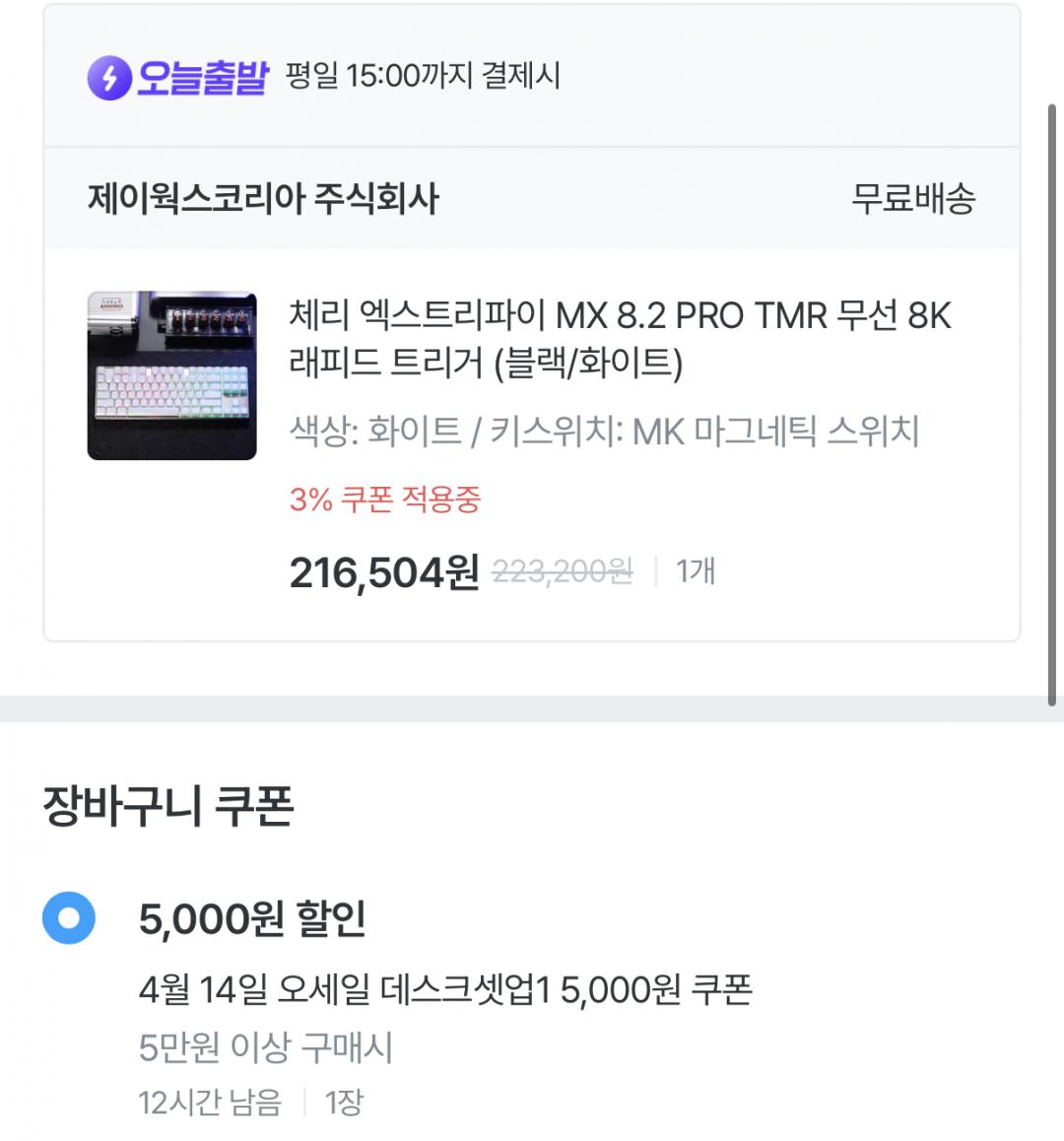 [오늘의집] CHERRY 엑스트리파이 MX 8.2 PRO TMR 무선 8K 래피드 트리거 블랙/화이트 (210,304원/무료)