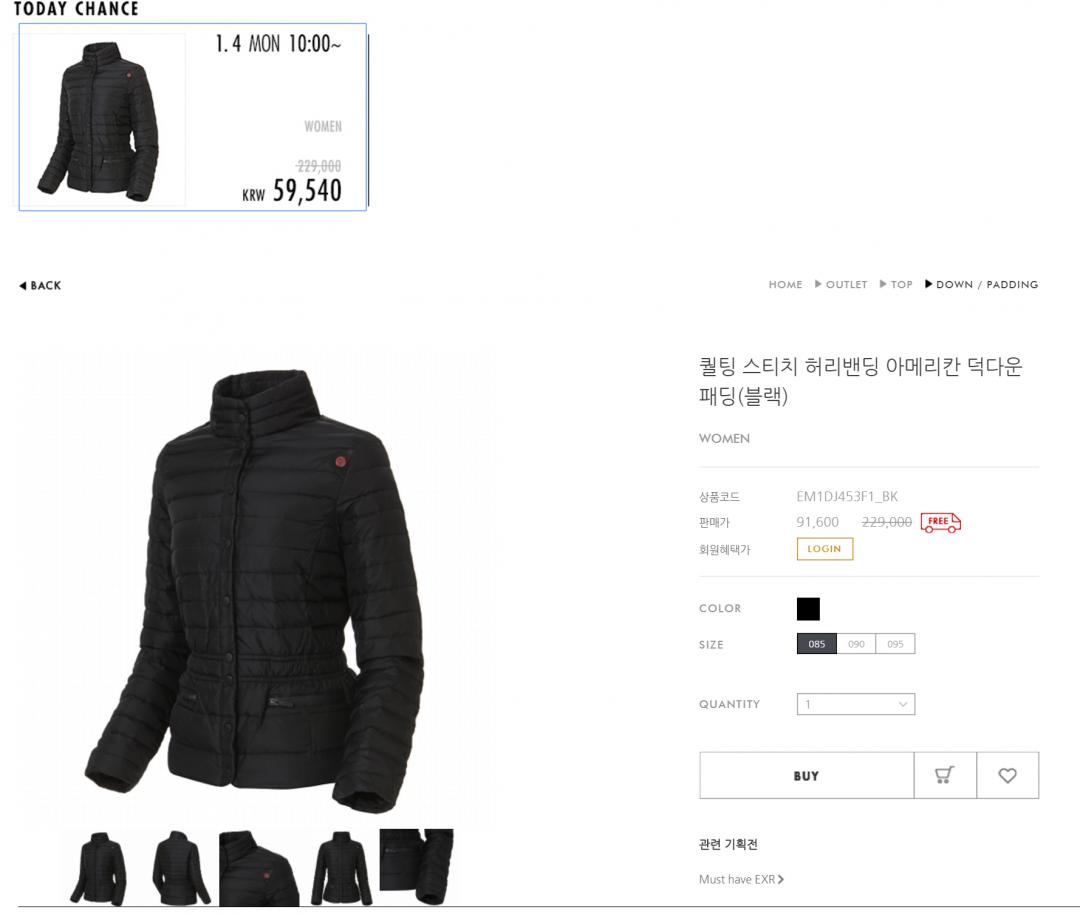 가격 할인률 좋네요~!! EXR덕다운 여름에 세일할때 사서 아주 잘 입고 있습니다. 여성류도 괜찮지 않을까 싶네요~ |