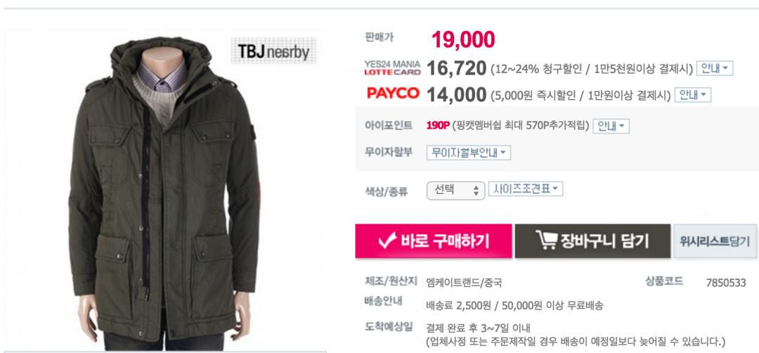 [아이스타일] [TBJ] 기본집업야상점퍼 (19,000원/2,500원)