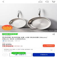 [G마켓] 프리미엄 통5중 스텐 프라이팬 304 스테인레스 24cm/28cm (19,900원/무배)