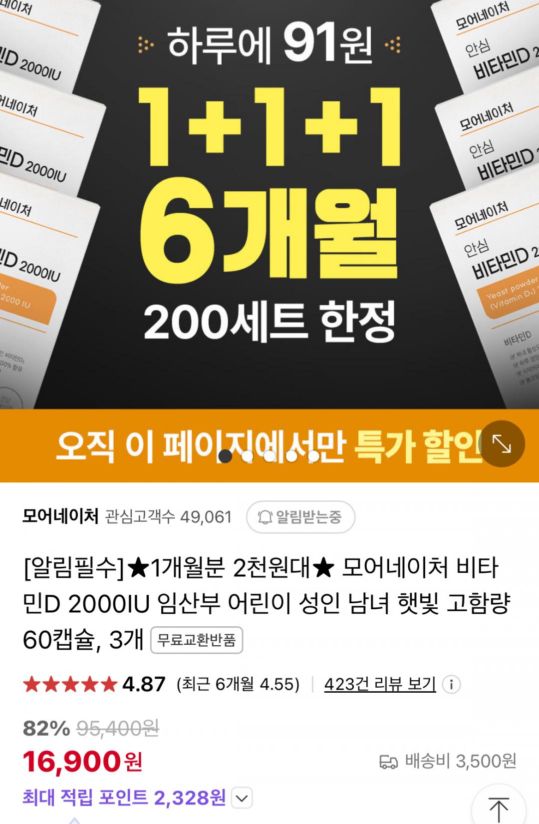 [네이버] 안심 비타민D 2000IU 6개월분 (16,900원/유배) > 국내핫딜