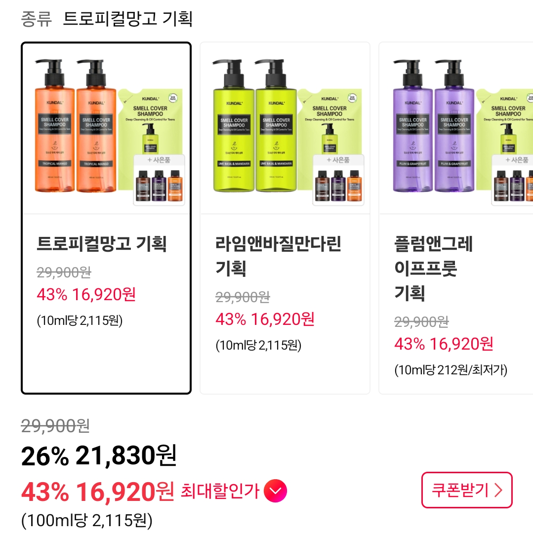 [11번가] 쿤달 올데이 스멜커버 청소년 샴푸 본품 400ml, 2개 + 리필 380ml, 1개+증정(16,920원/무료) > 국내핫딜