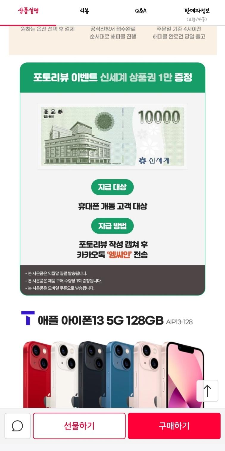 [11번가] 애플 아이폰13 128GB SK번호이동 (149000원/무료)